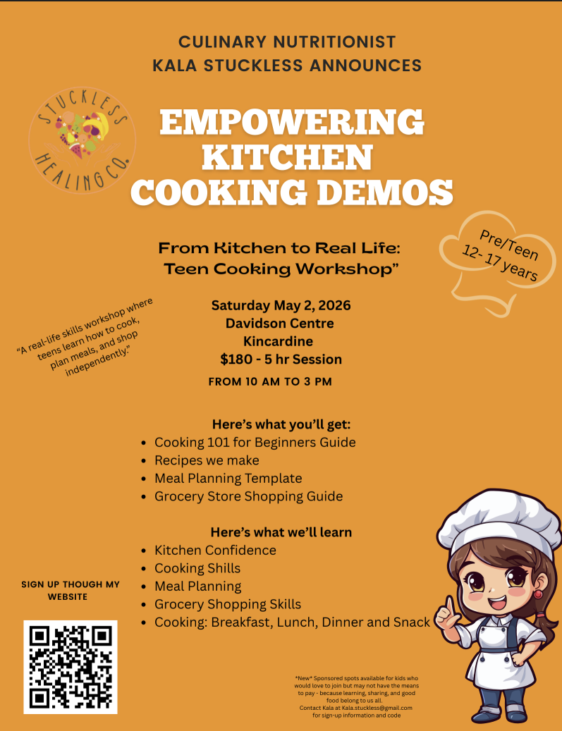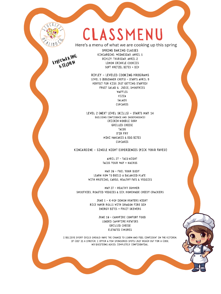 Led by Culinary Nutritionist Kala Stuckless, our programs teach essential kitchen skills, from baking basics to advanced meal prep, fostering confidence, creativity, and a love for real, whole foods.