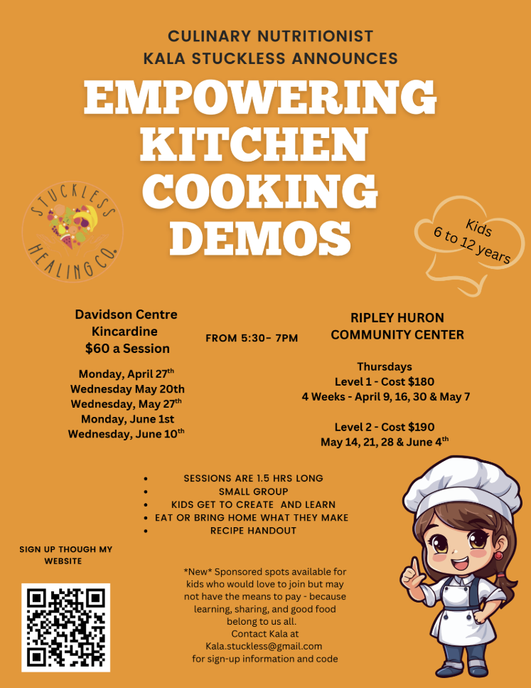 Empowering Kitchen Sessions offers fun, hands-on cooking classes for kids and teens in Kincardine, Ontario.